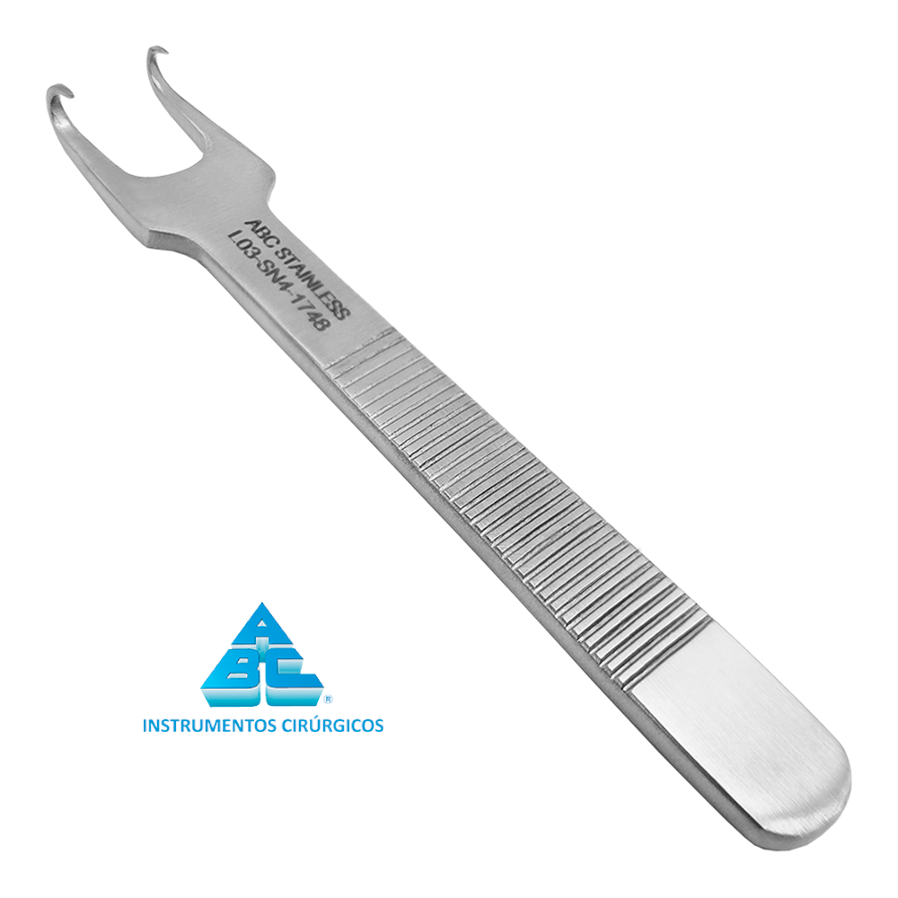 O Gancho Gubisch-Kilner ABC é um instrumento cirúrgico que permite aos cirurgiões puxar para trás e segurar o tecido cartilaginoso das narinas para expor a cartilagem e outras estruturas dentro da cavidade nasal. O Instrumento consiste em uma alça plana central e uma extremidade de trabalho tipo gancho. A alça tem sulcos horizontais grossos que evitam deslizamentos. Além disso, o gancho apresenta uma ponta afiada de dois dentes. A ponta garante retração máxima da narina e exposição ideal do campo cirúrgico. Fabricado em Aço Inoxidável Cirúrgico Premium com acabamento fosco garantindo uma camada extra de proteção ao instrumental.